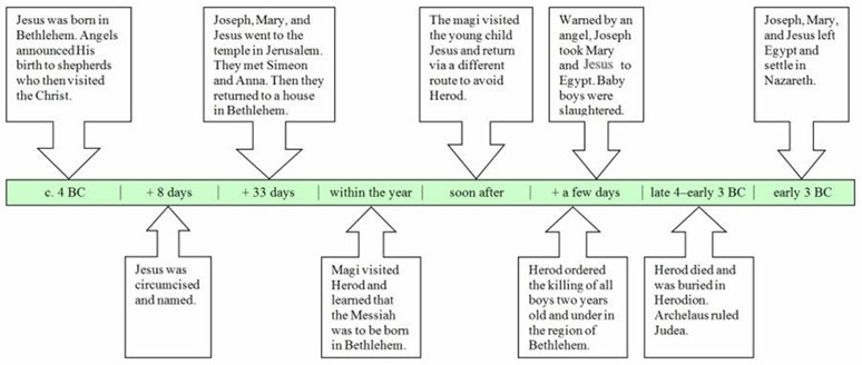 Sometime after this, months or at the most a couple of years later, the wise men came from the East bringing gifts of gold, frankincense and myrrh. These wise men were likely following the teachings of Daniel who was taken captive centuries before and became a wise man in Babylon and Persia (both in the East). Daniel 9:20-26 gives a detailed timeline of when Messiah would be born and these wise men would’ve had access to that knowledge. We don’t know how many wise men there were. Most scholars say at least twelve. Tradition gives us three because of the number of gifts that are mentioned. After they leave, they get a warning from God in a dream to not return to Herod. Joseph gets a warning from God too, but to take the family and flee to Egypt to escape Herod. After Herod dies, the family leaves Egypt and travels back to Nazareth where Jesus will spend most of his time growing up before being baptized into the ministry of being a Rabbi. Matthew 2