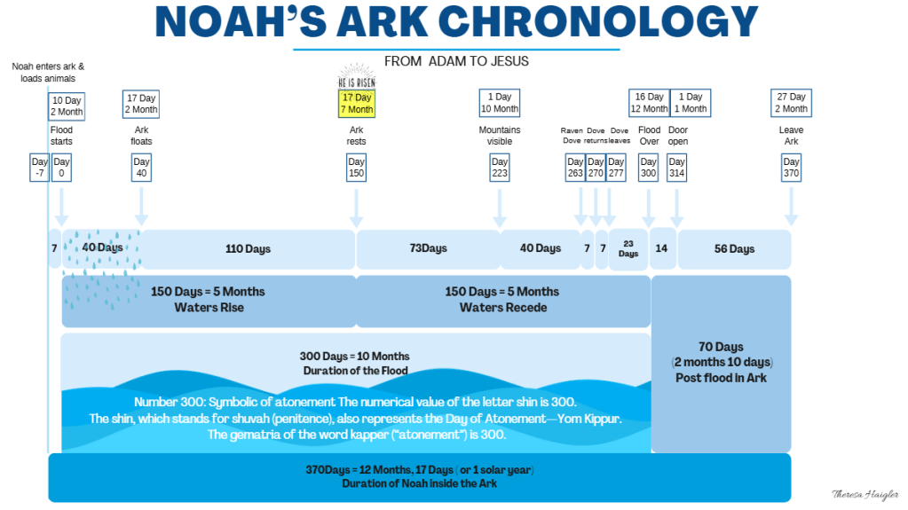This next chart shows how the flood corresponds to the Feasts of Israel that will be established during the time of Moses. Even before these Appointed Times were given to His people after the Exodus, God was already working them from the beginning.
