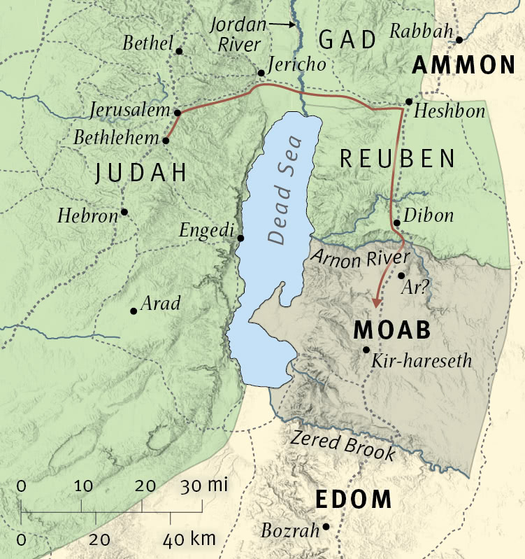 We are still in the period of the Judges in the book of Ruth. In this zooming in on a particular family we get to see the impact of the cycle in the book of Judges. Naomi and her family (Ephrathites) leave Bethlehem and head to the land of Moab because of a famine. This is probably a judgment on Israel following other gods again.