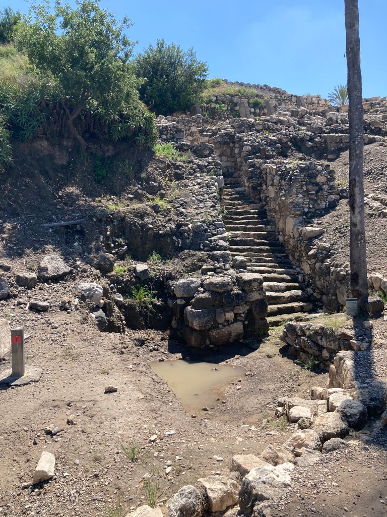 A royal city of the Canaanites, it is strategically located where the Via Maris enters the Valley of Jezreel. This fortress city protected the greatest ancient trade route in the world. So many world leaders fought in this area: Thutmoses, Ramses, Shishak, Pharoah Nacho (there’s a fun title), Sennacherib, Alexander the Great, Napolean and many more. Even General Allenby of the British army fought here.