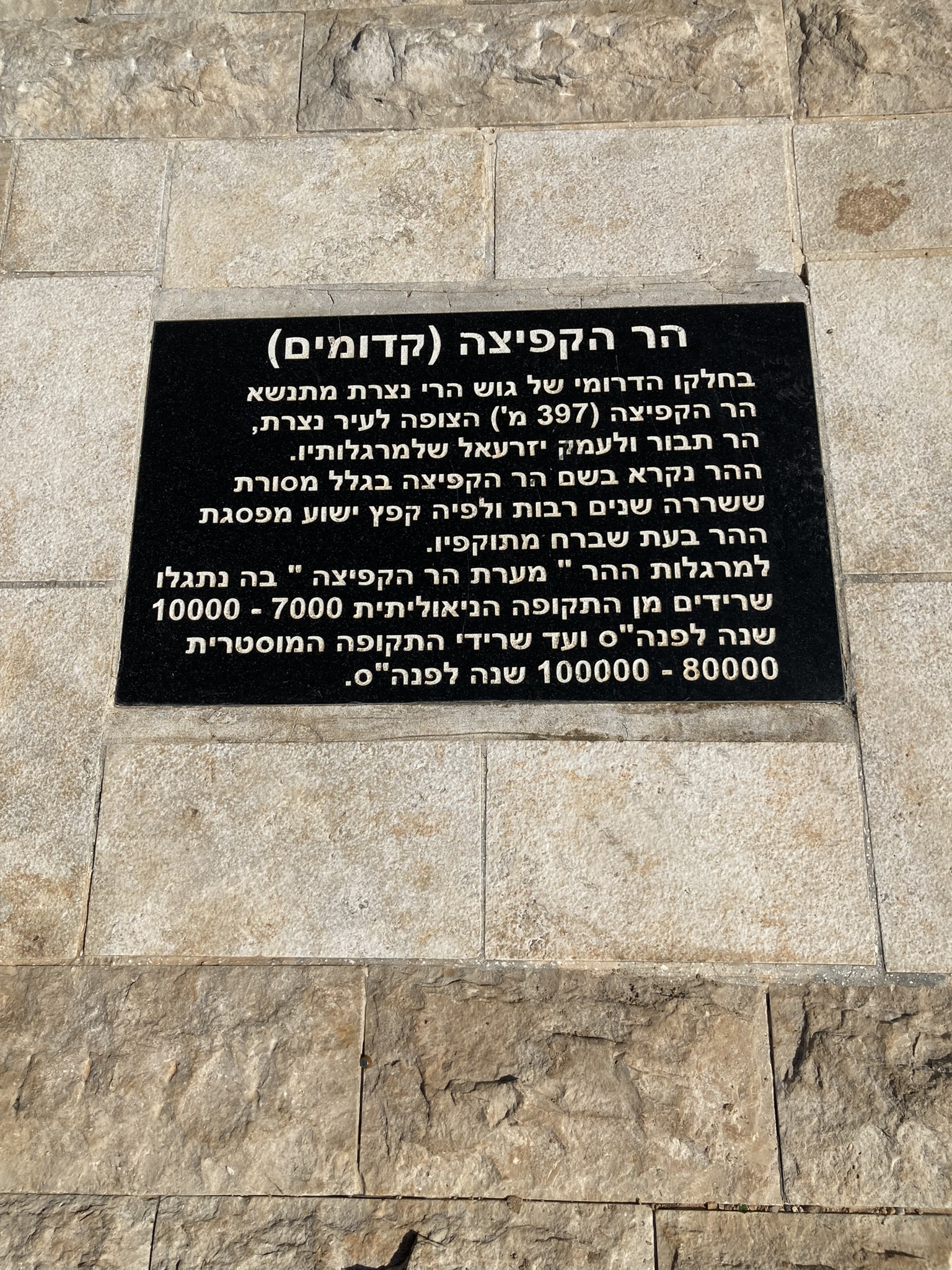 Mount Carmel, Hebrew Har Ha-karmel. The name, dating back to biblical times, is derived from the Hebrew kerem (“vineyard” or “orchard”) and attests to the mountain’s fertility even in ancient times. At its highest point, Mount Carmel is a mountain of limestone and reaches over 1,700 feet above sea level and is approximately 13 miles long. Known as “The Place of the Burning”. Overlooks the valley of Armageddon.