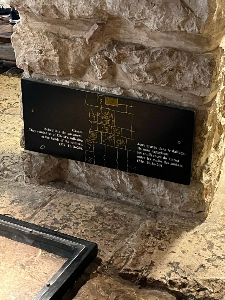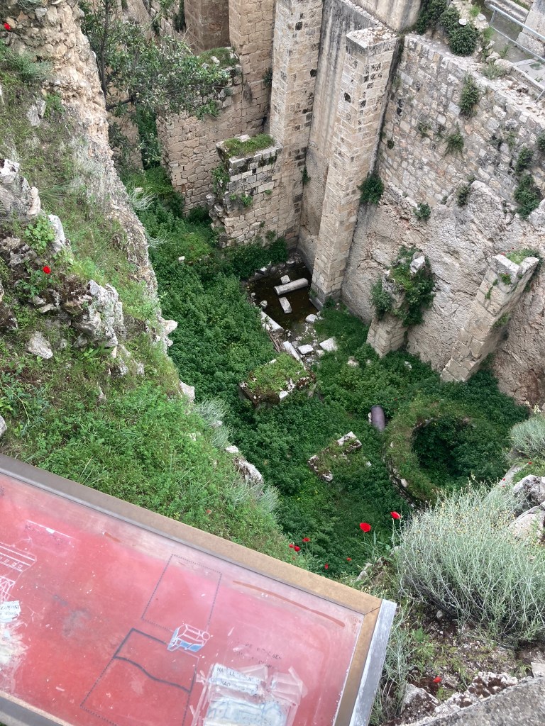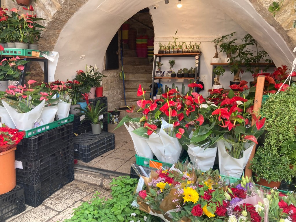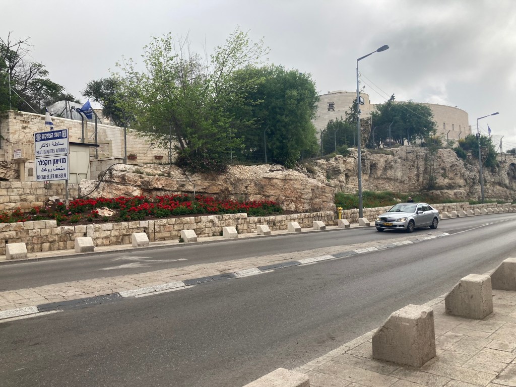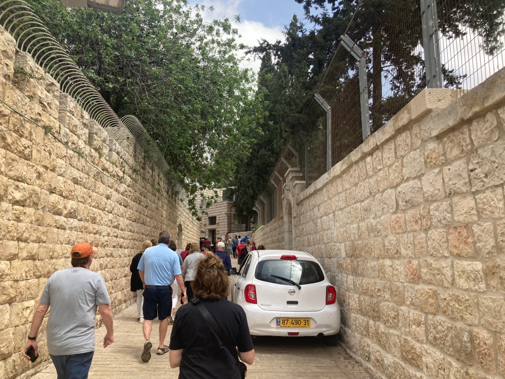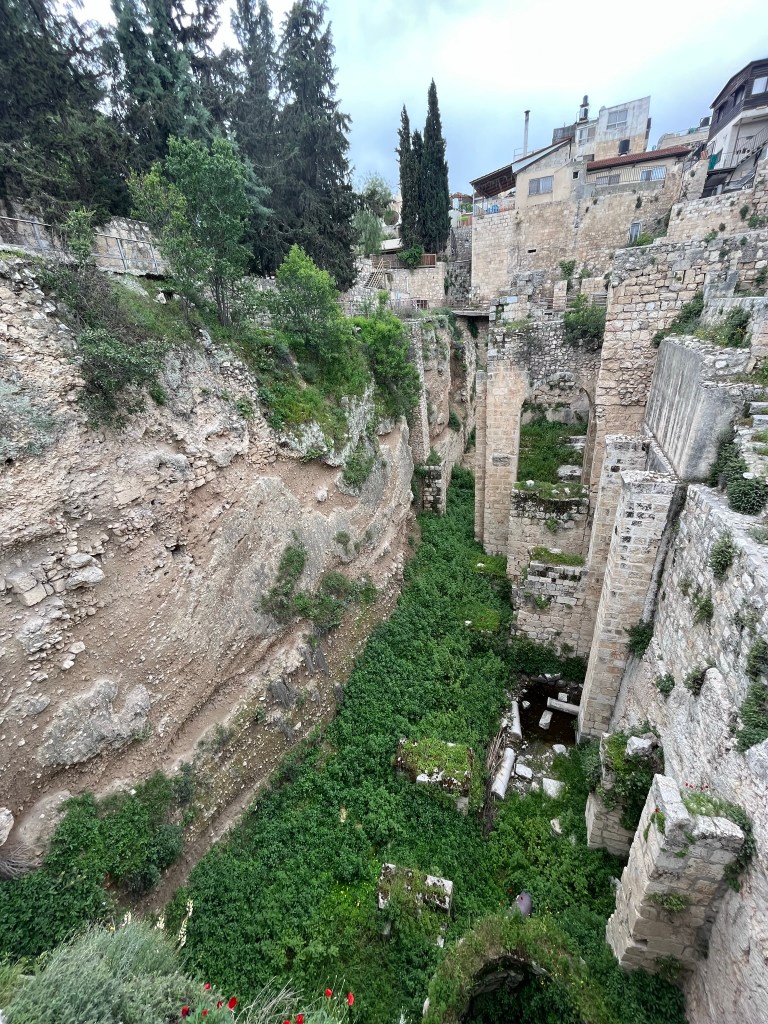 The Lion’s Gate, also known as the Gate of Jehoshaphat, St. Mary’s Gate, St. Stephen’s Gate, and the Gate of the Tribes, is located on the eastern wall of the Old City, which rises above the steep western bank of the Kidron Valley. The gate is near the Temple Mount’s northern wall. It opens directly into the Muslim Quarter and is the gate closest to the first station of the cross on the Via Dolorosa. This area is very trashy. You’ll see that in our photos as we walk along the north then east side heading to the Lions’ Gate entrance.