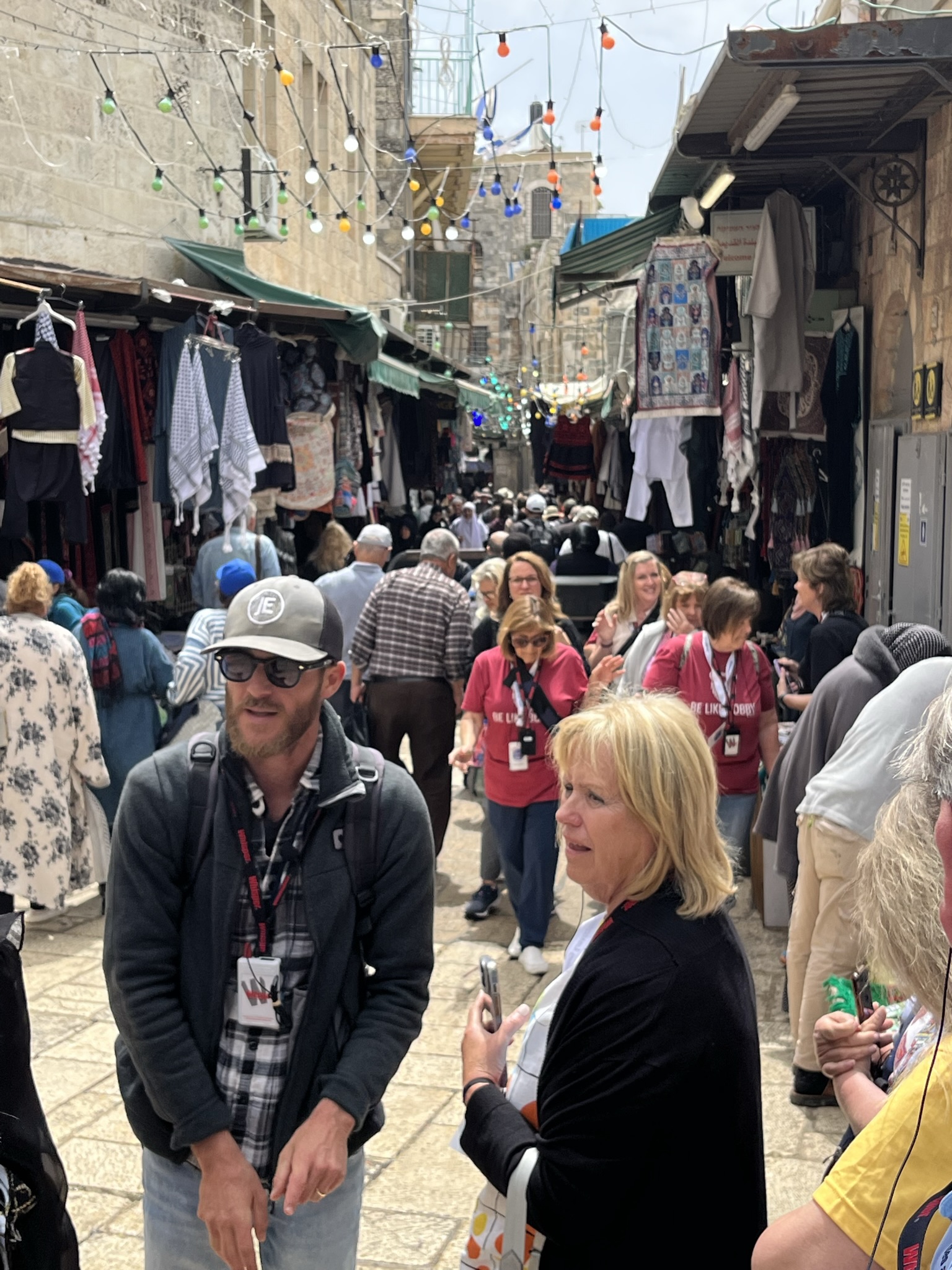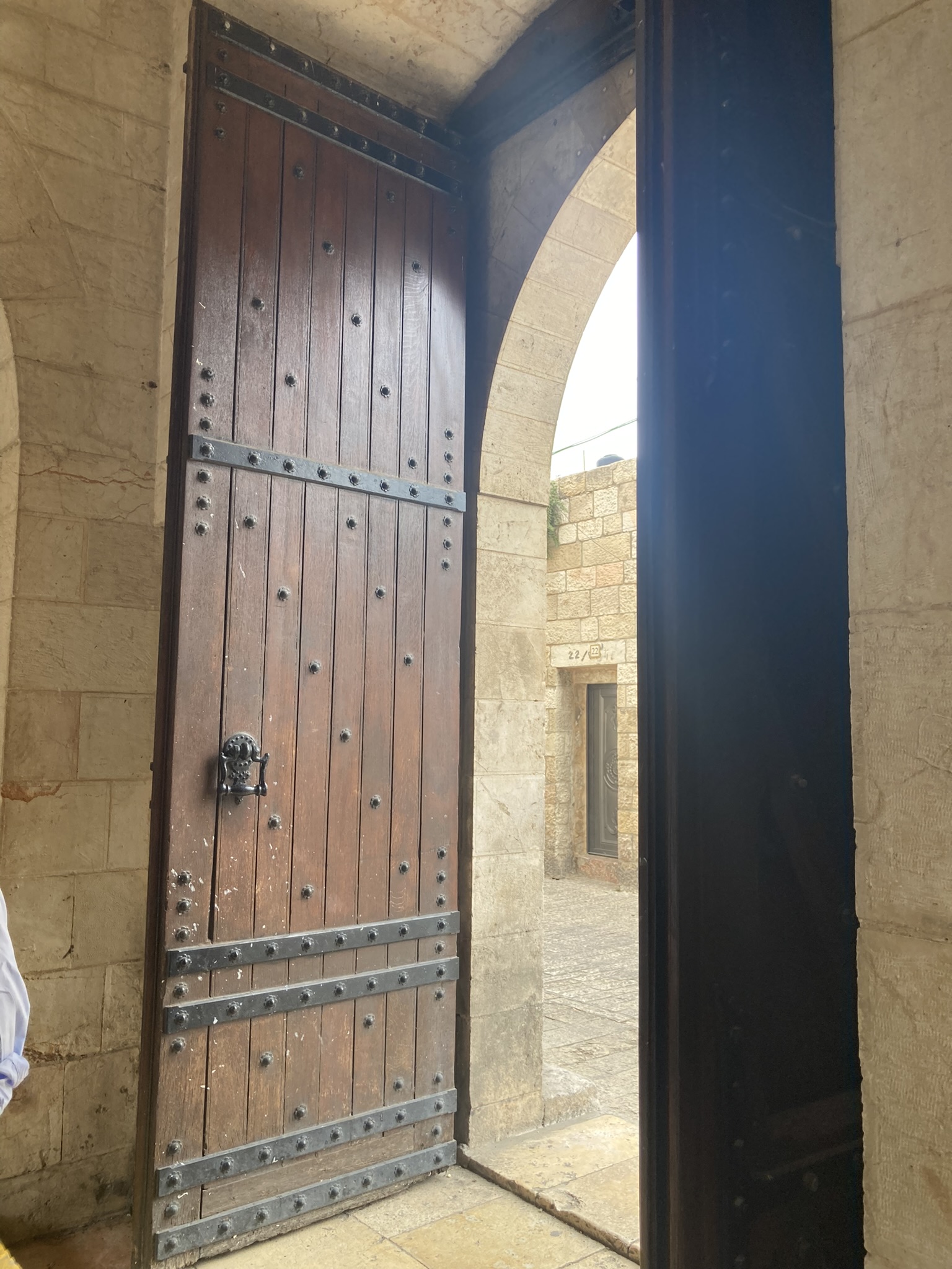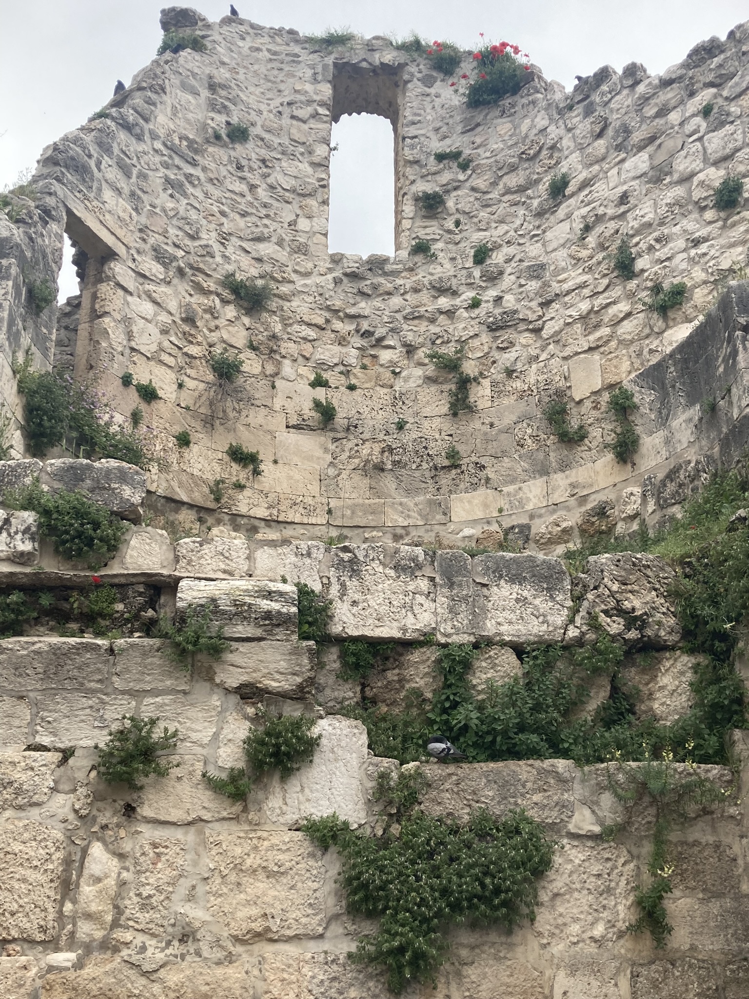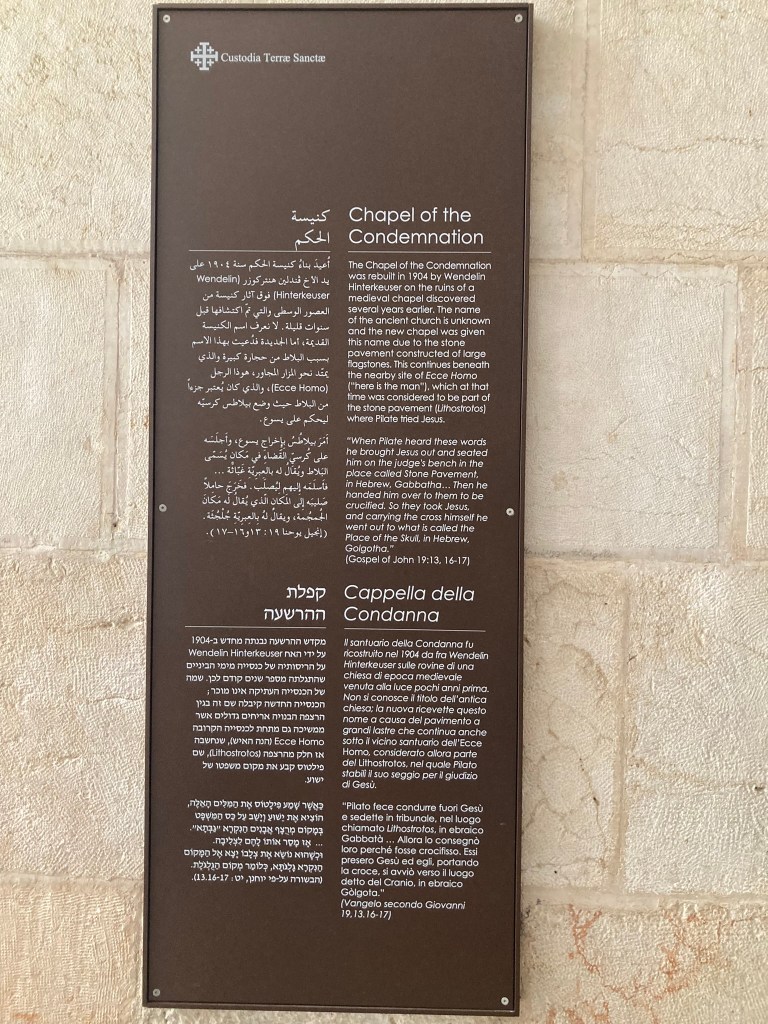 The Lion’s Gate, also known as the Gate of Jehoshaphat, St. Mary’s Gate, St. Stephen’s Gate, and the Gate of the Tribes, is located on the eastern wall of the Old City, which rises above the steep western bank of the Kidron Valley. The gate is near the Temple Mount’s northern wall. It opens directly into the Muslim Quarter and is the gate closest to the first station of the cross on the Via Dolorosa. This area is very trashy. You’ll see that in our photos as we walk along the north then east side heading to the Lions’ Gate entrance.