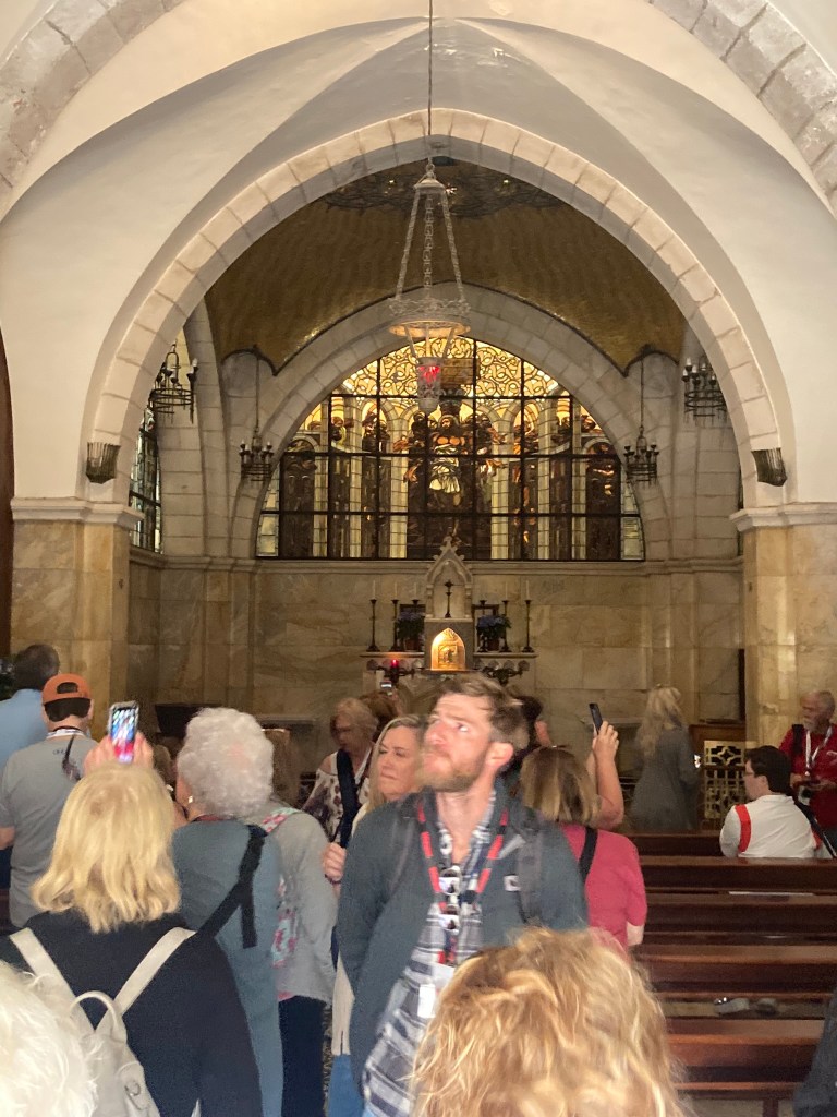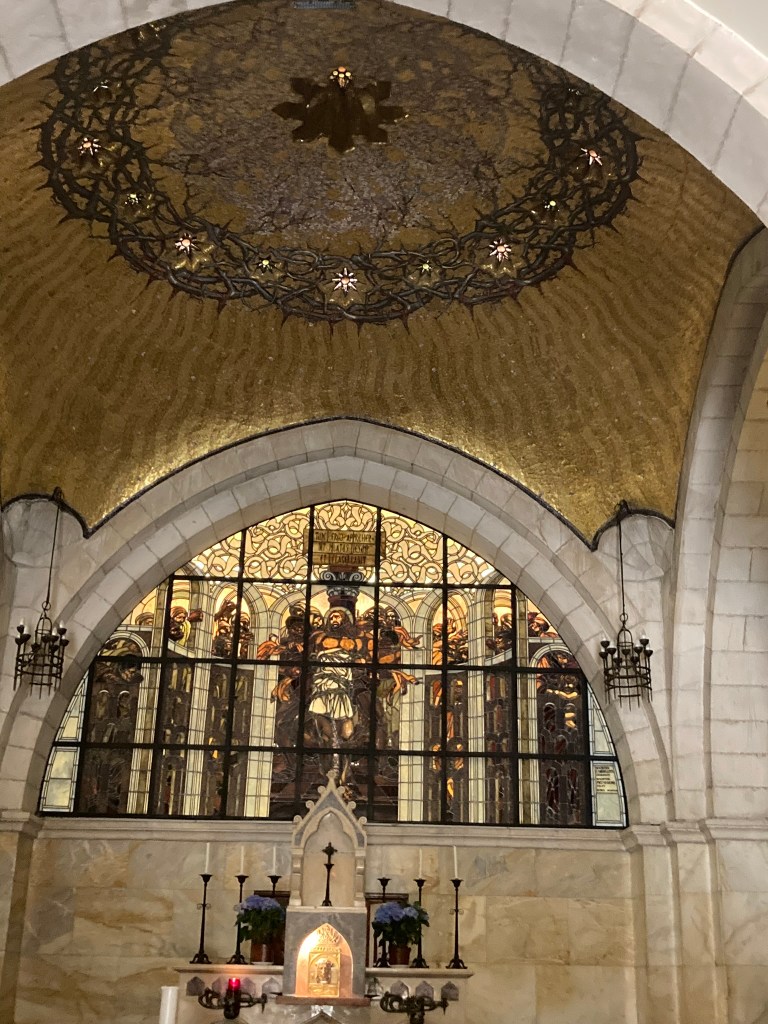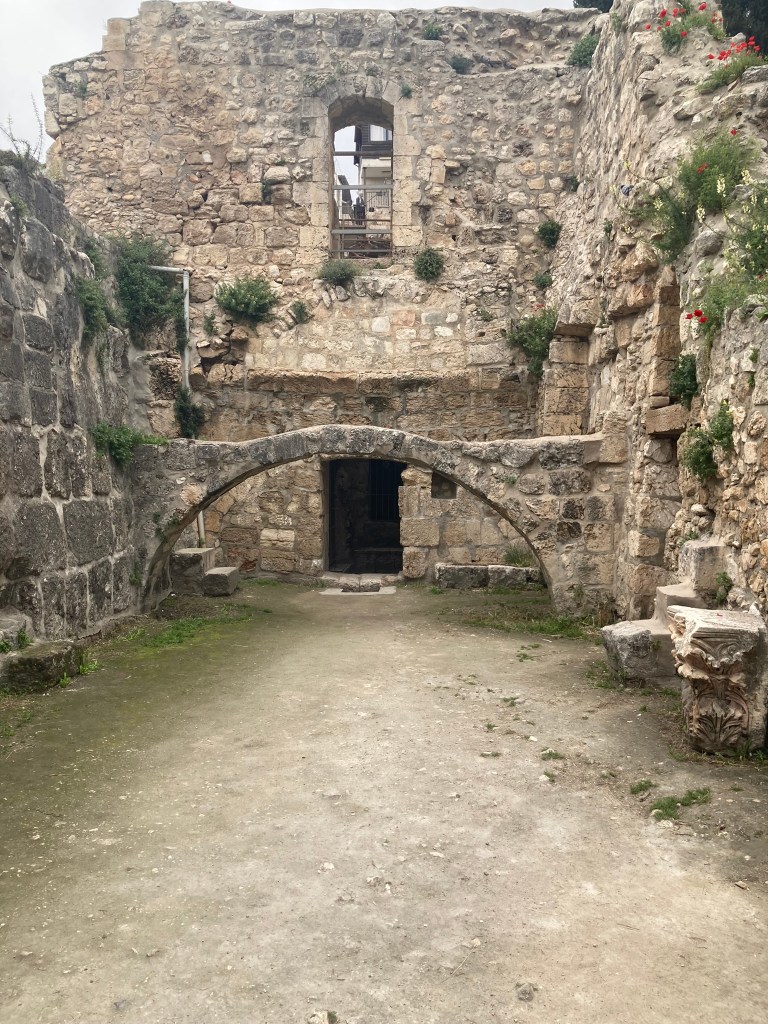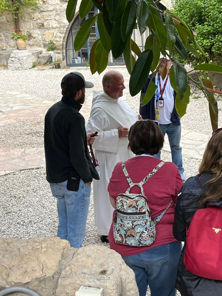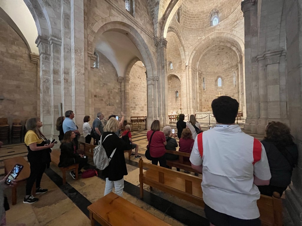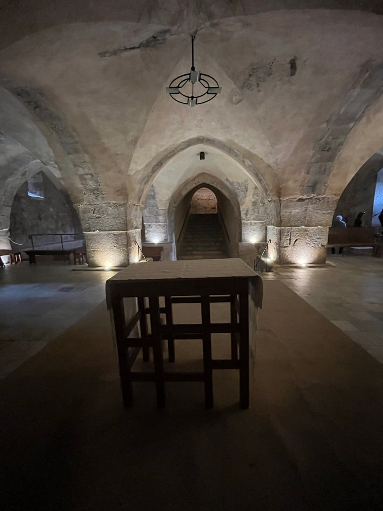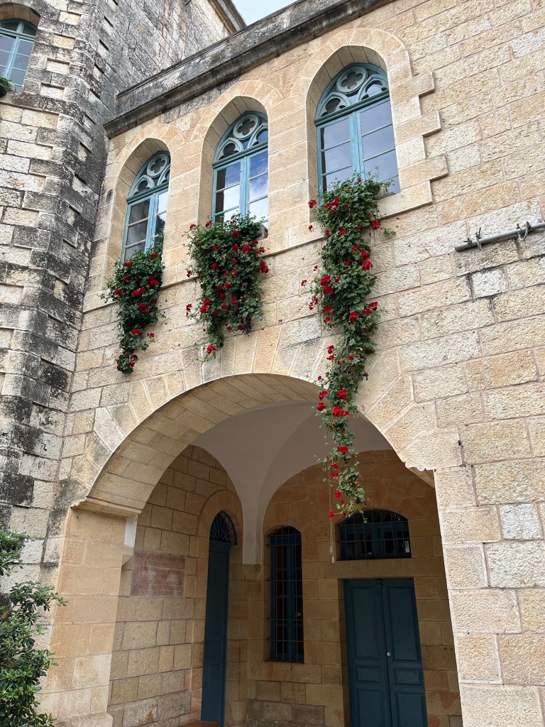 The Benedictine Abbey of Abu Gosh was our final stop of our tour and it was absolutely lovely. Starting in biblical times, the place had a name: Kyriat Yearim. The biblical city of “Kiriath Jearim” (another spelling) is best known for the house of Abinadab which held the Ark of the Covenant from the time of Samuel until the time of David. This is also considered to be the place where the “road to Emmaus” led the two discouraged disciples to their encounter with the risen Lord (Luke 24).