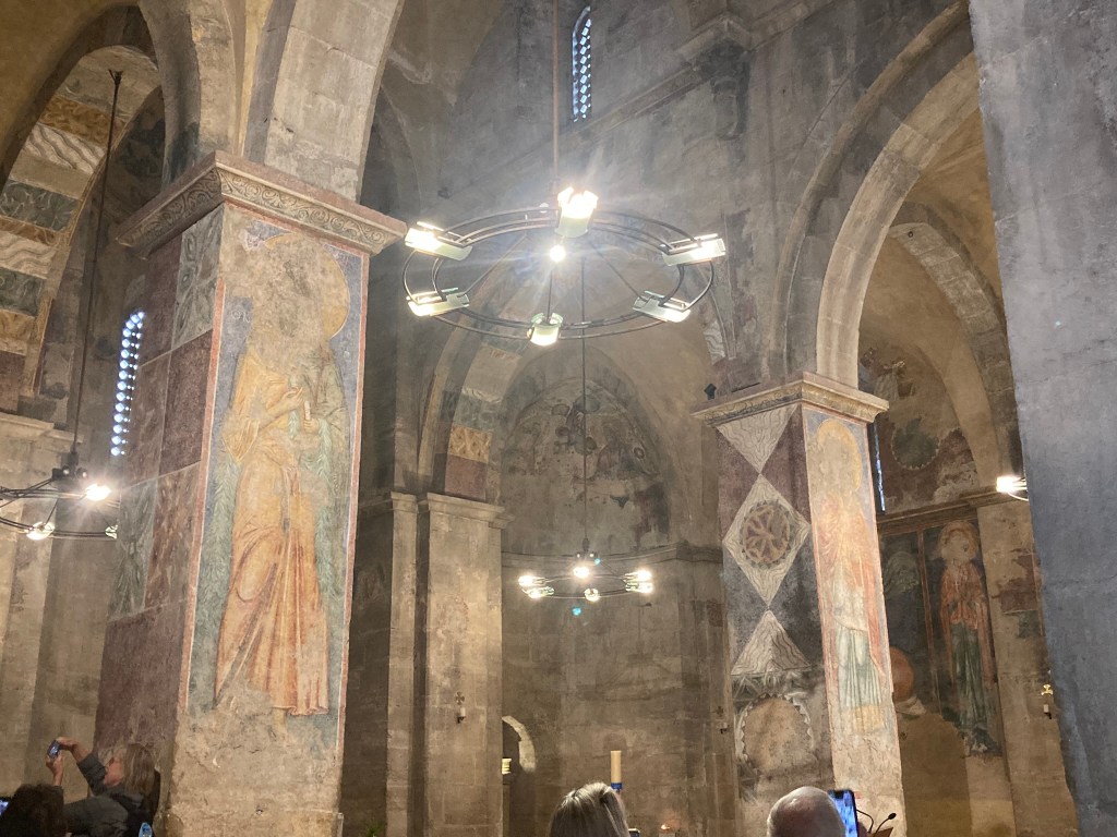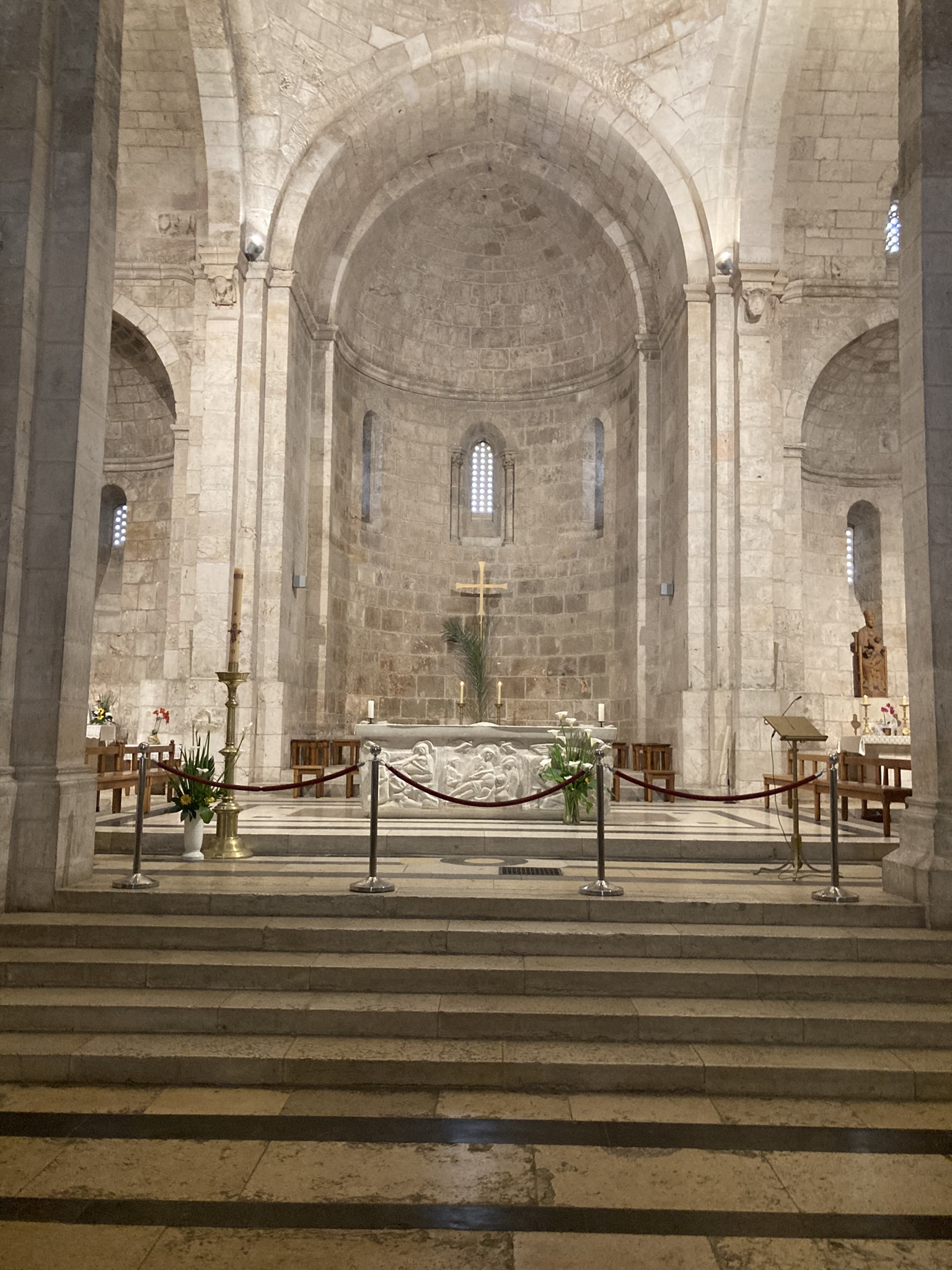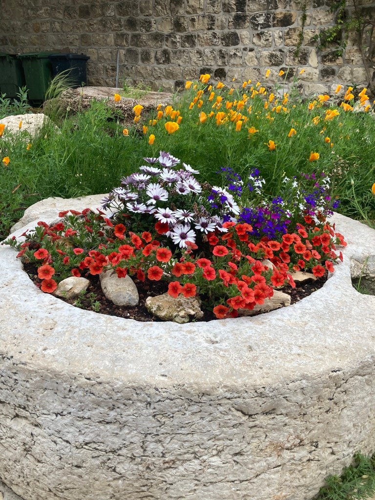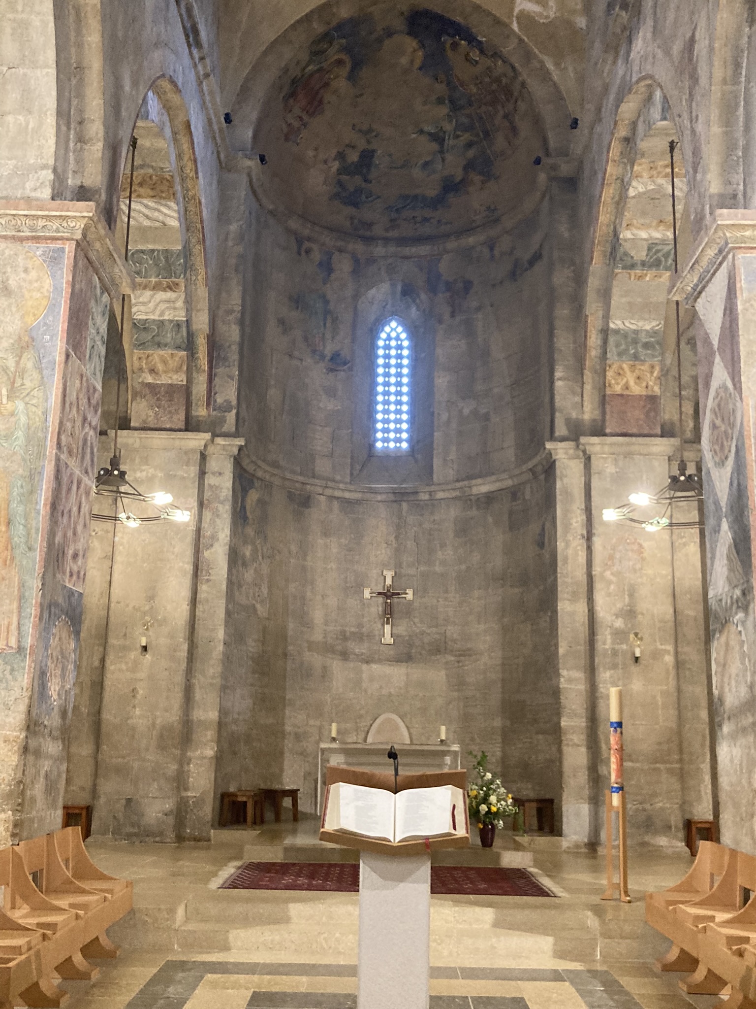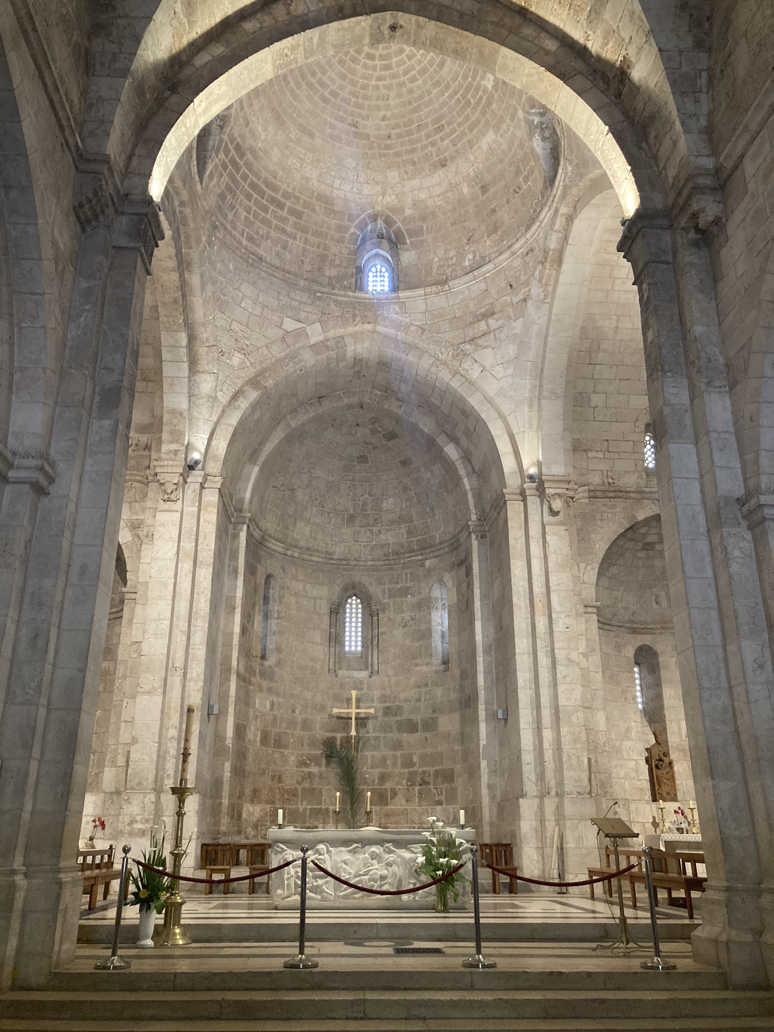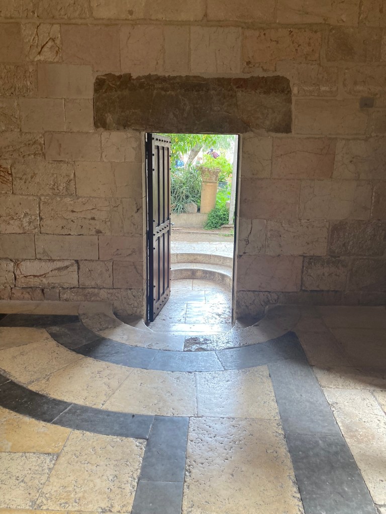The Benedictine Abbey of Abu Gosh was our final stop of our tour and it was absolutely lovely. Starting in biblical times, the place had a name: Kyriat Yearim. The biblical city of “Kiriath Jearim” (another spelling) is best known for the house of Abinadab which held the Ark of the Covenant from the time of Samuel until the time of David. This is also considered to be the place where the “road to Emmaus” led the two discouraged disciples to their encounter with the risen Lord (Luke 24).