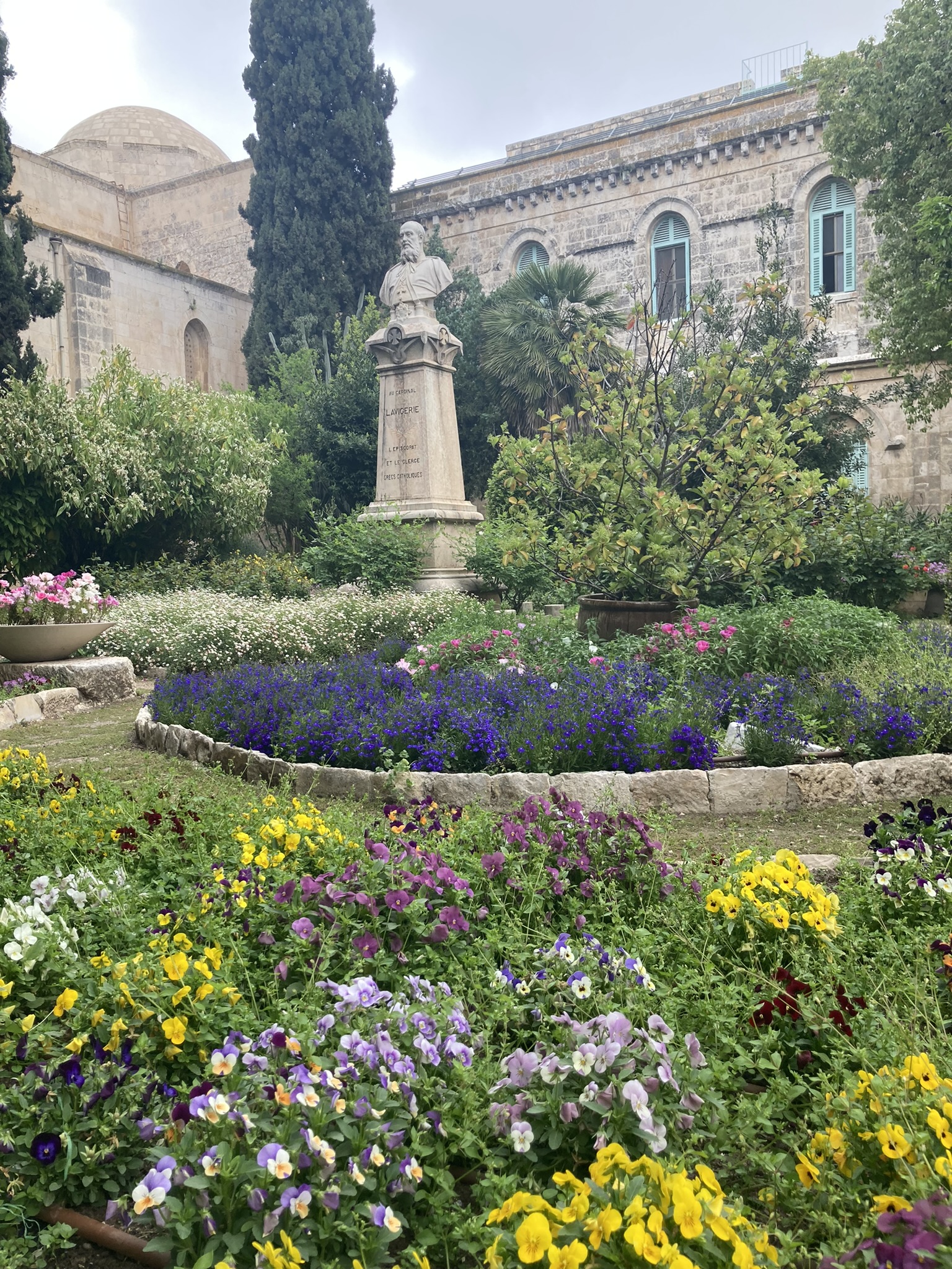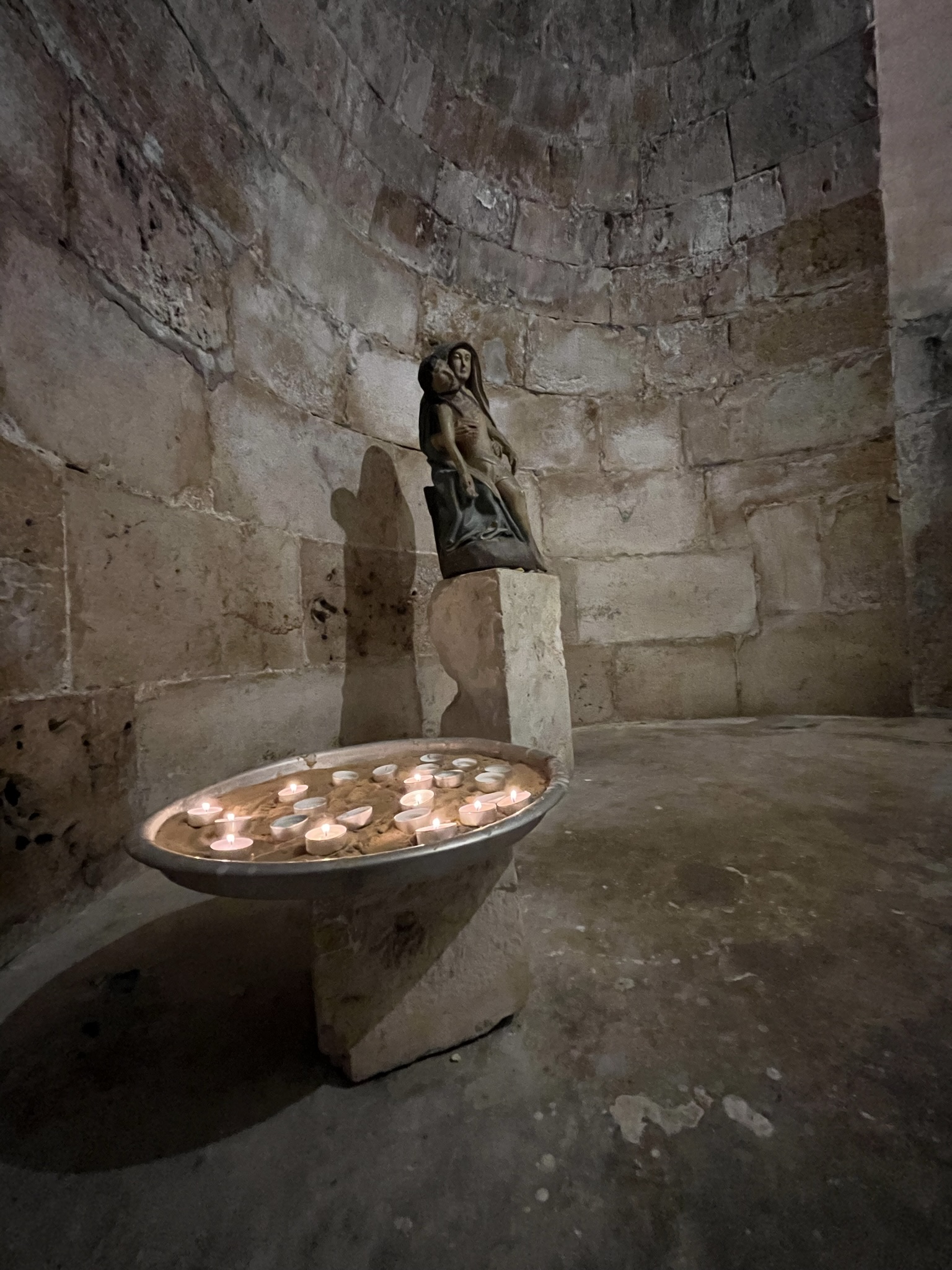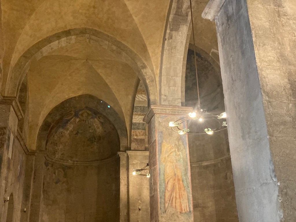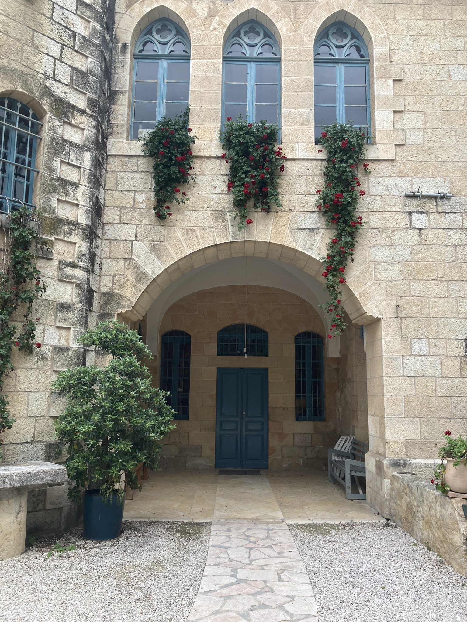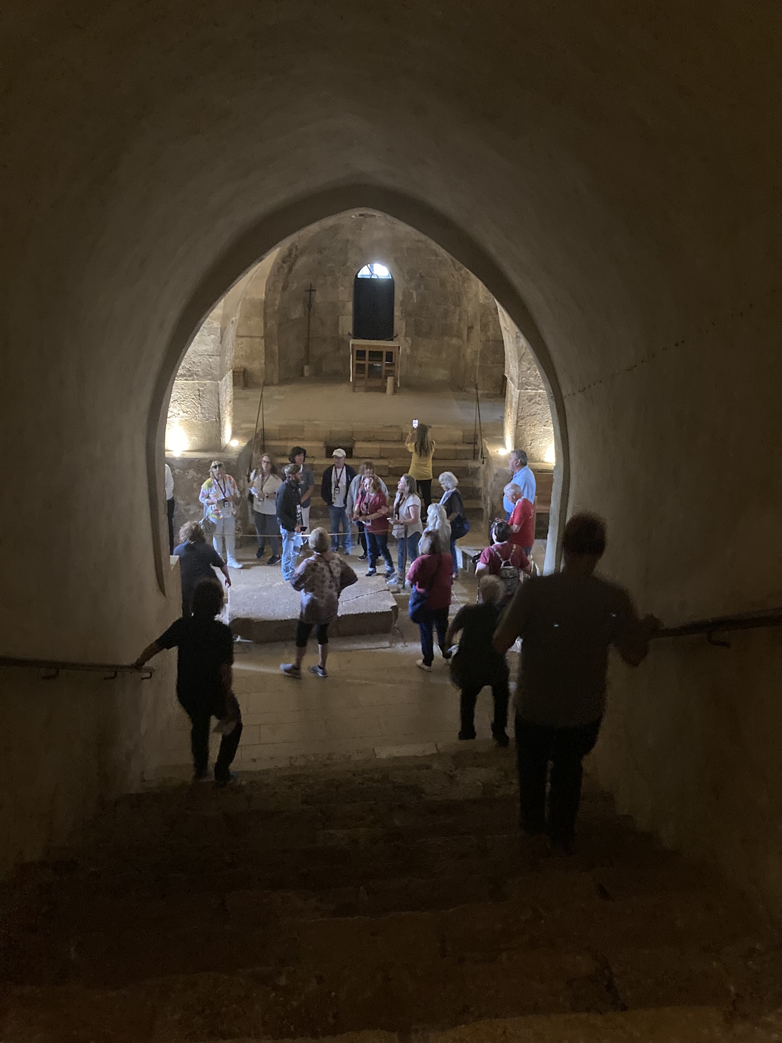 The Benedictine Abbey of Abu Gosh was our final stop of our tour and it was absolutely lovely. Starting in biblical times, the place had a name: Kyriat Yearim. The biblical city of “Kiriath Jearim” (another spelling) is best known for the house of Abinadab which held the Ark of the Covenant from the time of Samuel until the time of David. This is also considered to be the place where the “road to Emmaus” led the two discouraged disciples to their encounter with the risen Lord (Luke 24).