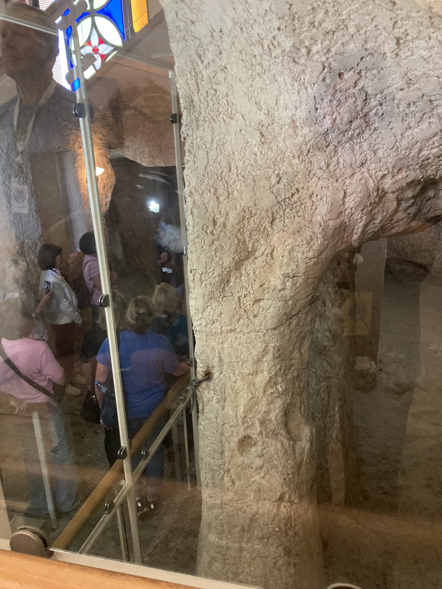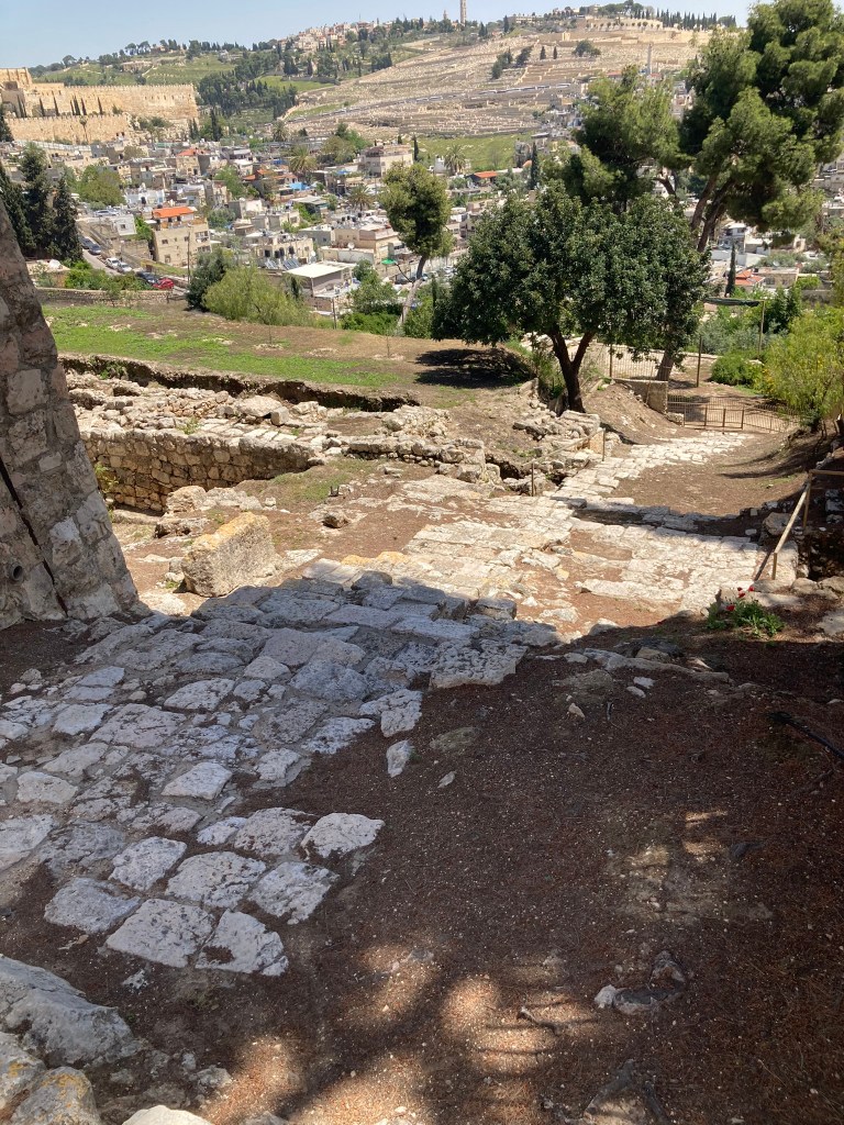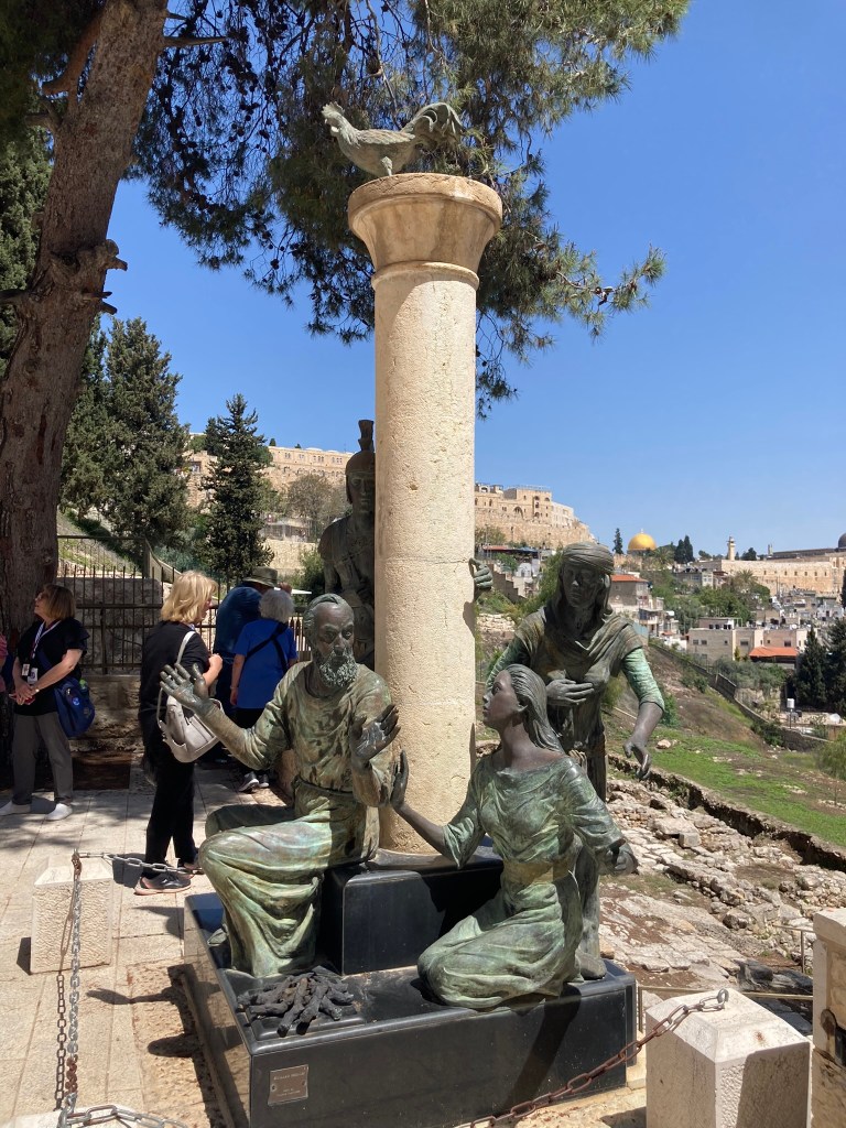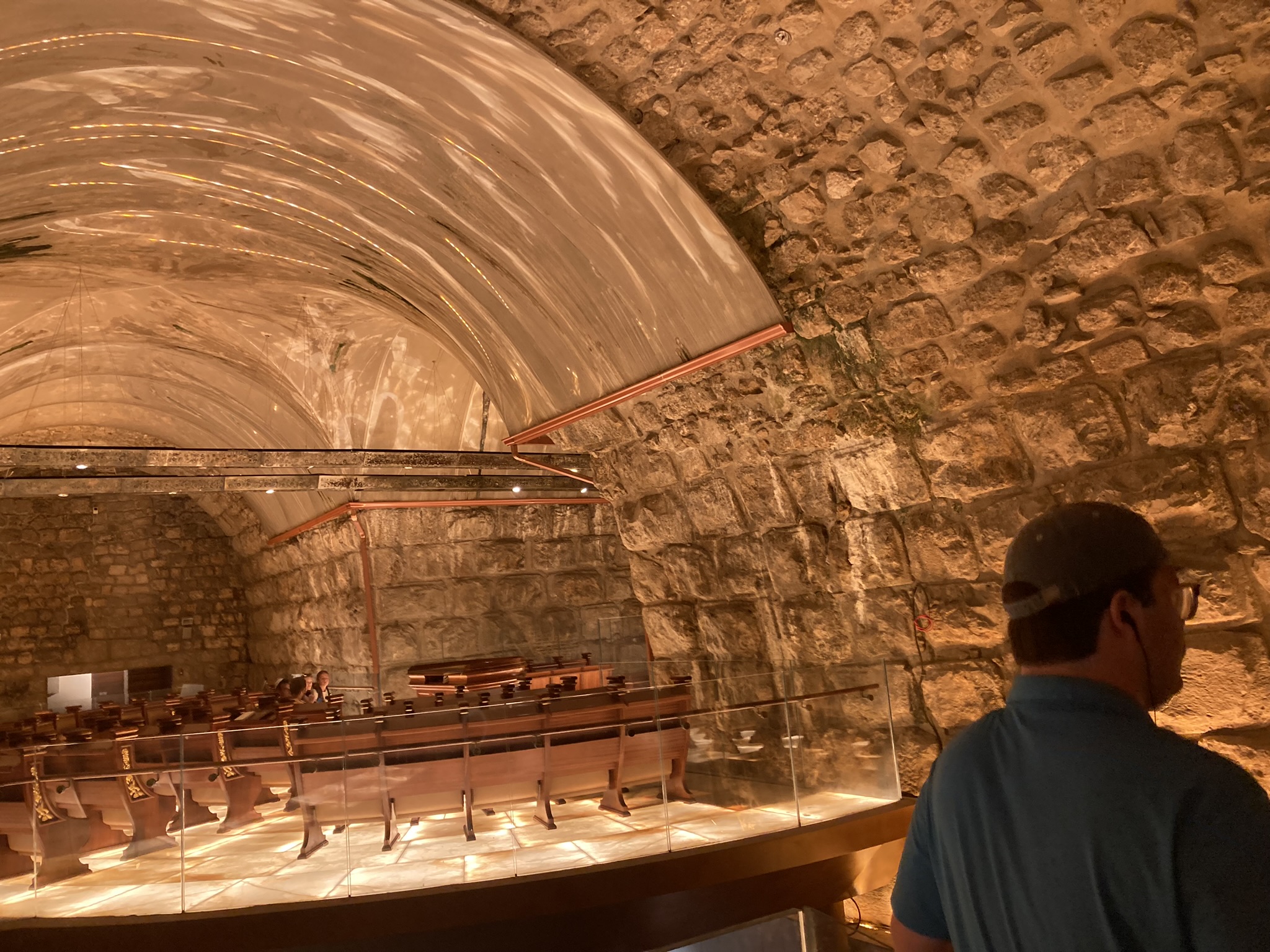 We traveled from the Garden of Gethsemane to the Old City where the House of Caiaphas was located. This would’ve been the trek for Jesus when He was arrested. There were many excavations happening at the time we were there and you can see those in the photos. While Jesus was inside being interrogated by the High Priest, Peter was outside busy denying Jesus by the fire. There is a statue there with a rooster at the top.