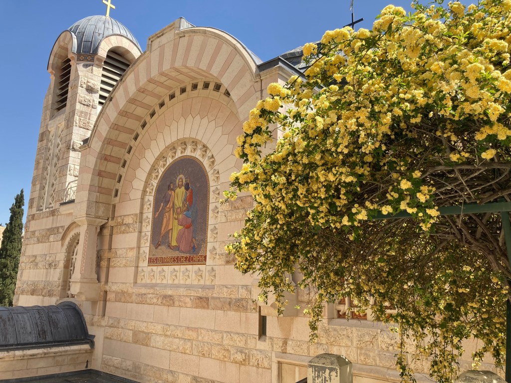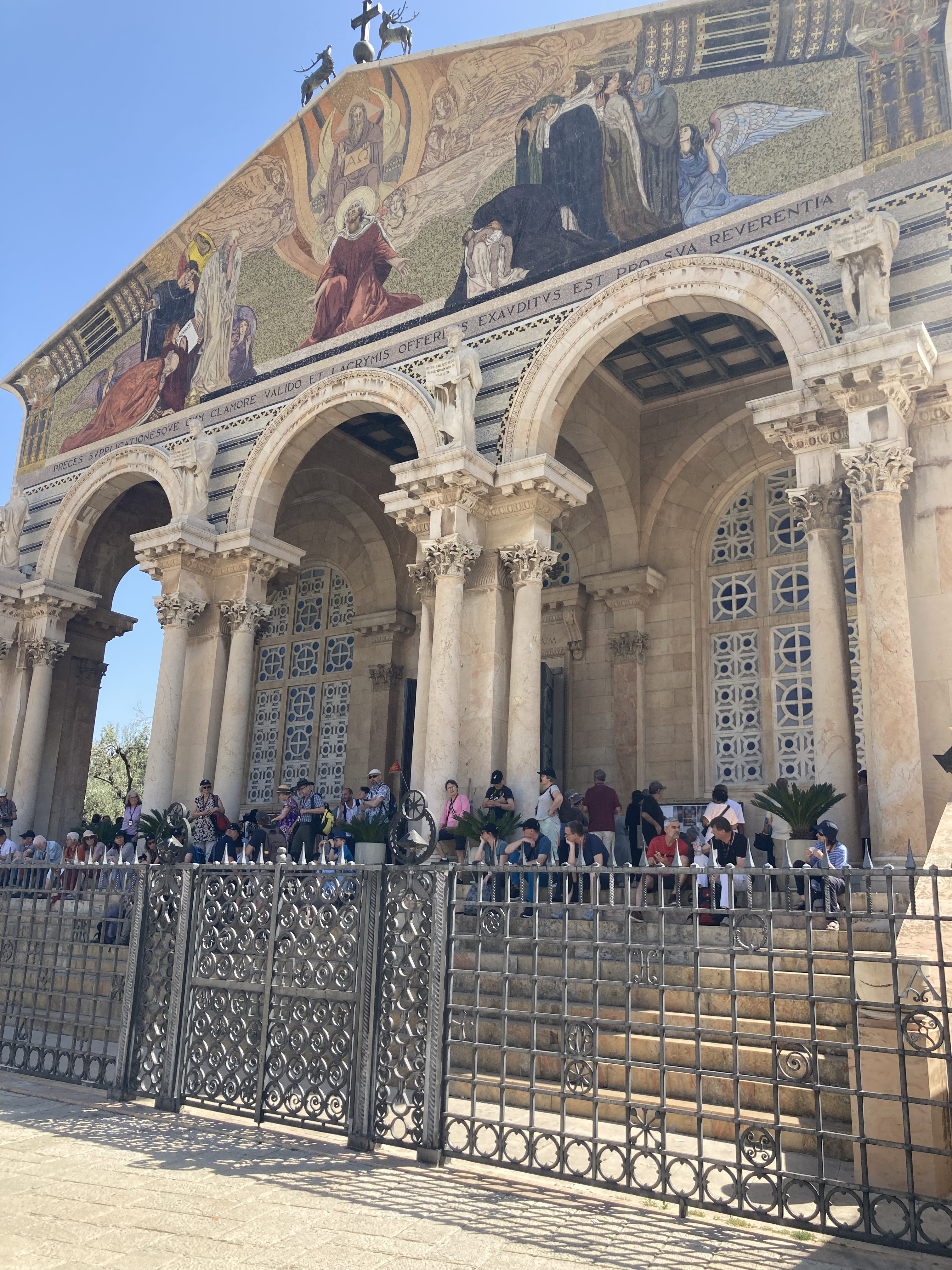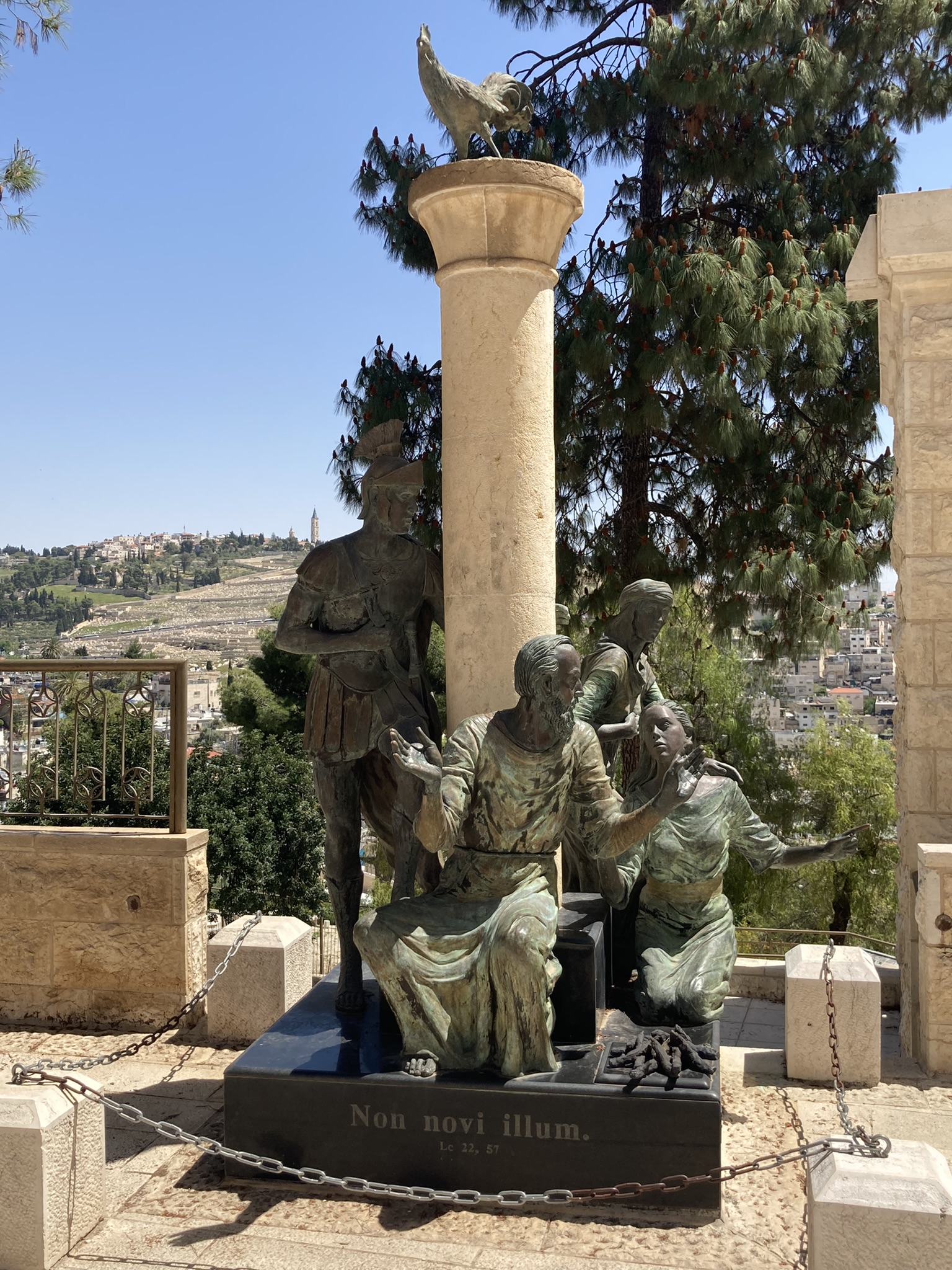We traveled from the Garden of Gethsemane to the Old City where the House of Caiaphas was located. This would’ve been the trek for Jesus when He was arrested. There were many excavations happening at the time we were there and you can see those in the photos. While Jesus was inside being interrogated by the High Priest, Peter was outside busy denying Jesus by the fire. There is a statue there with a rooster at the top.