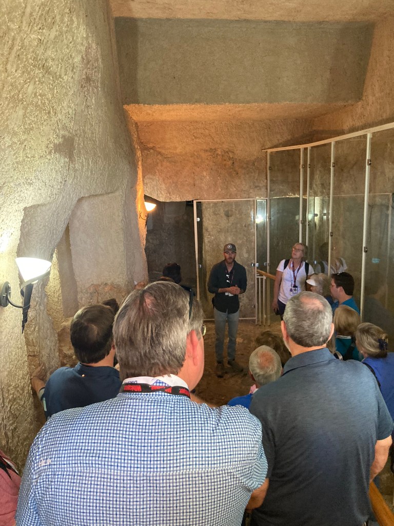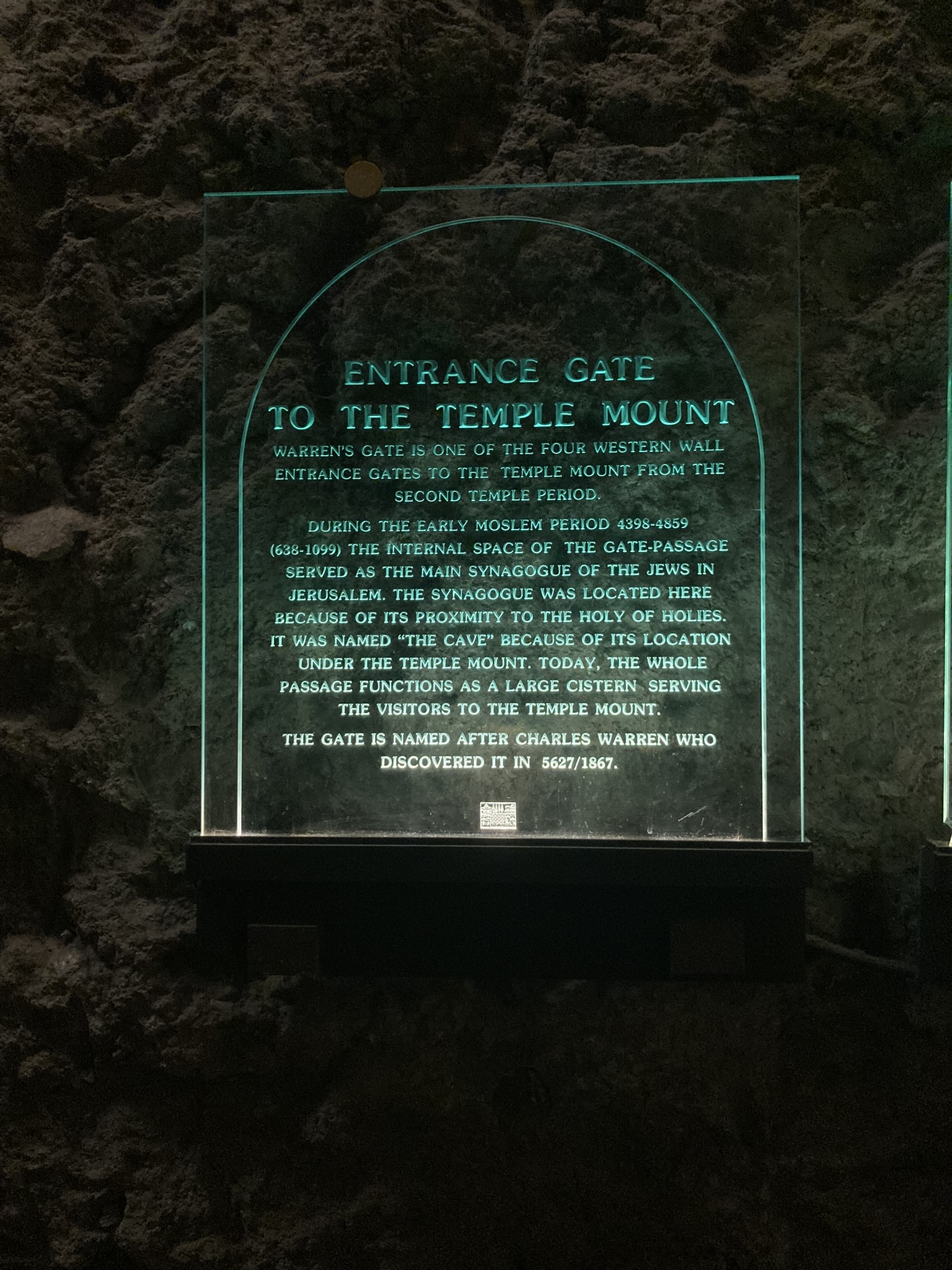 Next we go underground to the foundations of the Western Wall and see the Warren’s Gate entrance. This is the closest place a Jewish person can get to where the Holy of Holies once stood.