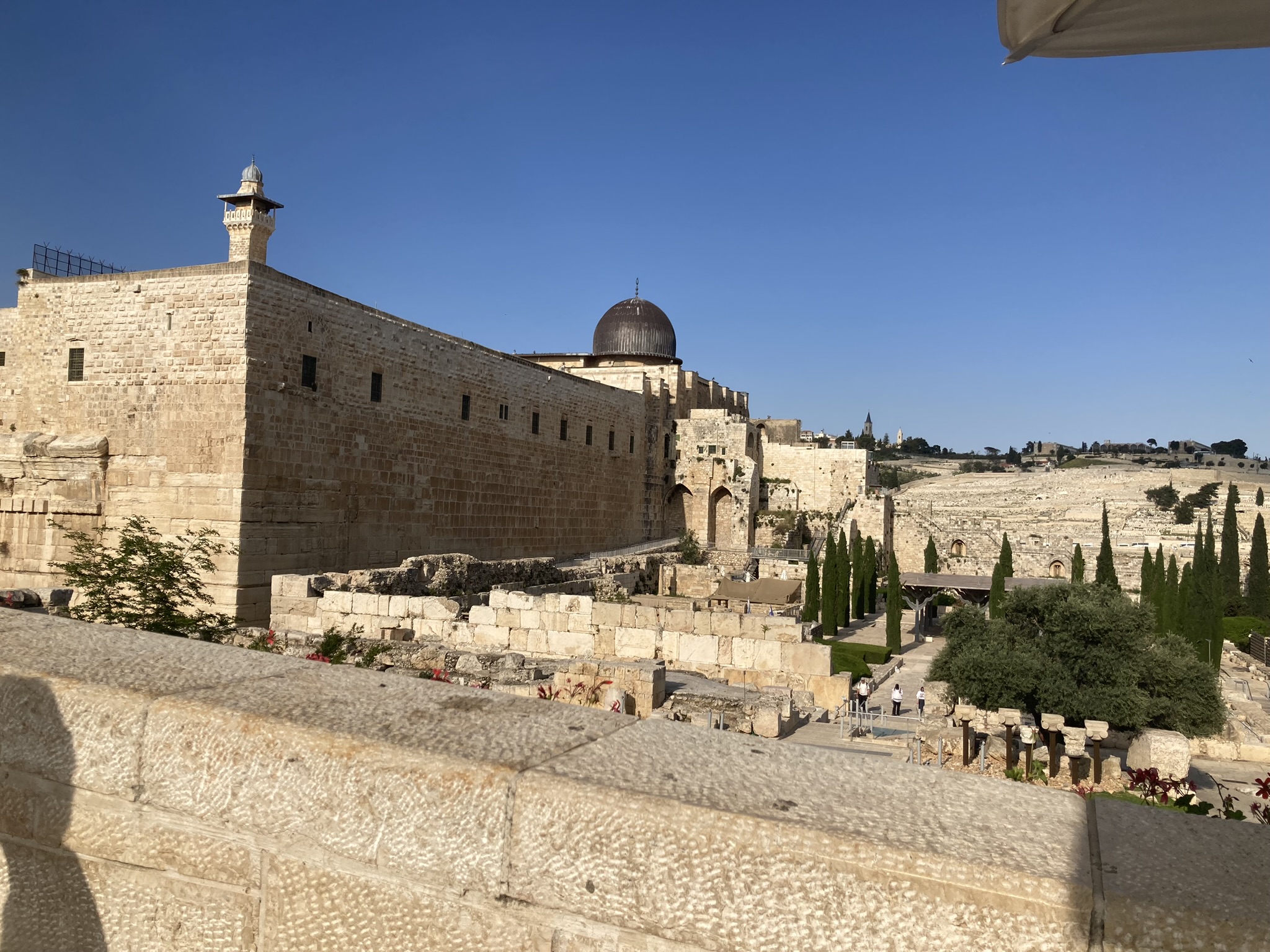 The Temple Mount area is about 27 acres on the top of Mount Moriah. The first mention of this place is in Genesis 22:1-19 where God told Abraham to bring Isaac as a sacrifice. When asked about the lamb for the sacrifice, Abraham told Isaac, “God will provide himself the lamb for the burnt offering, my son.” Many centuries later with Jesus, God did indeed provide Himself, complete with His head in thorns.