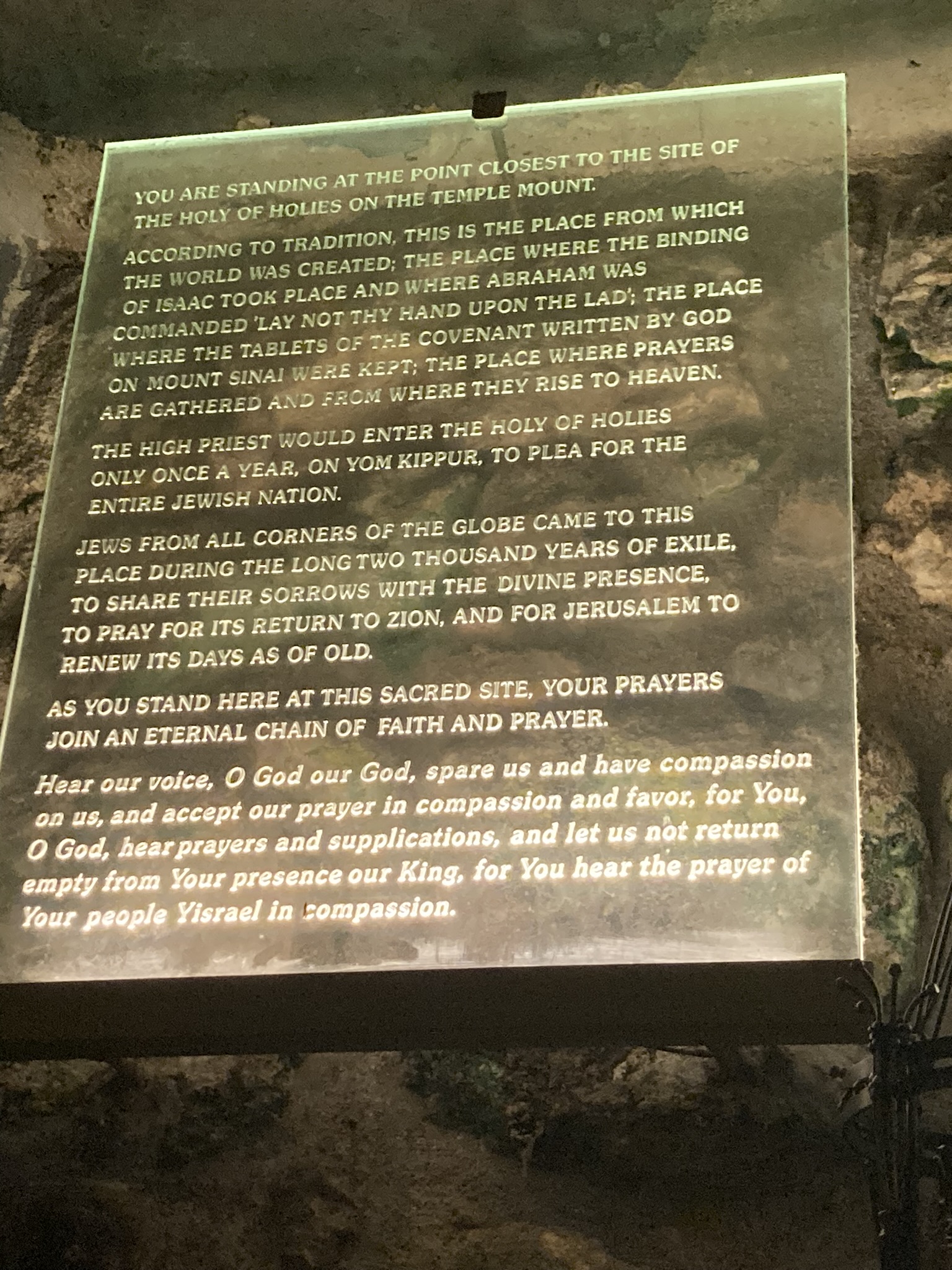 We were not allowed to go to the Temple Mount at the time of our visit because it was the end of the Muslim holiday Ramadan. Below is some information on the site so you can see where the Western Wall is in relation to the whole mount.
